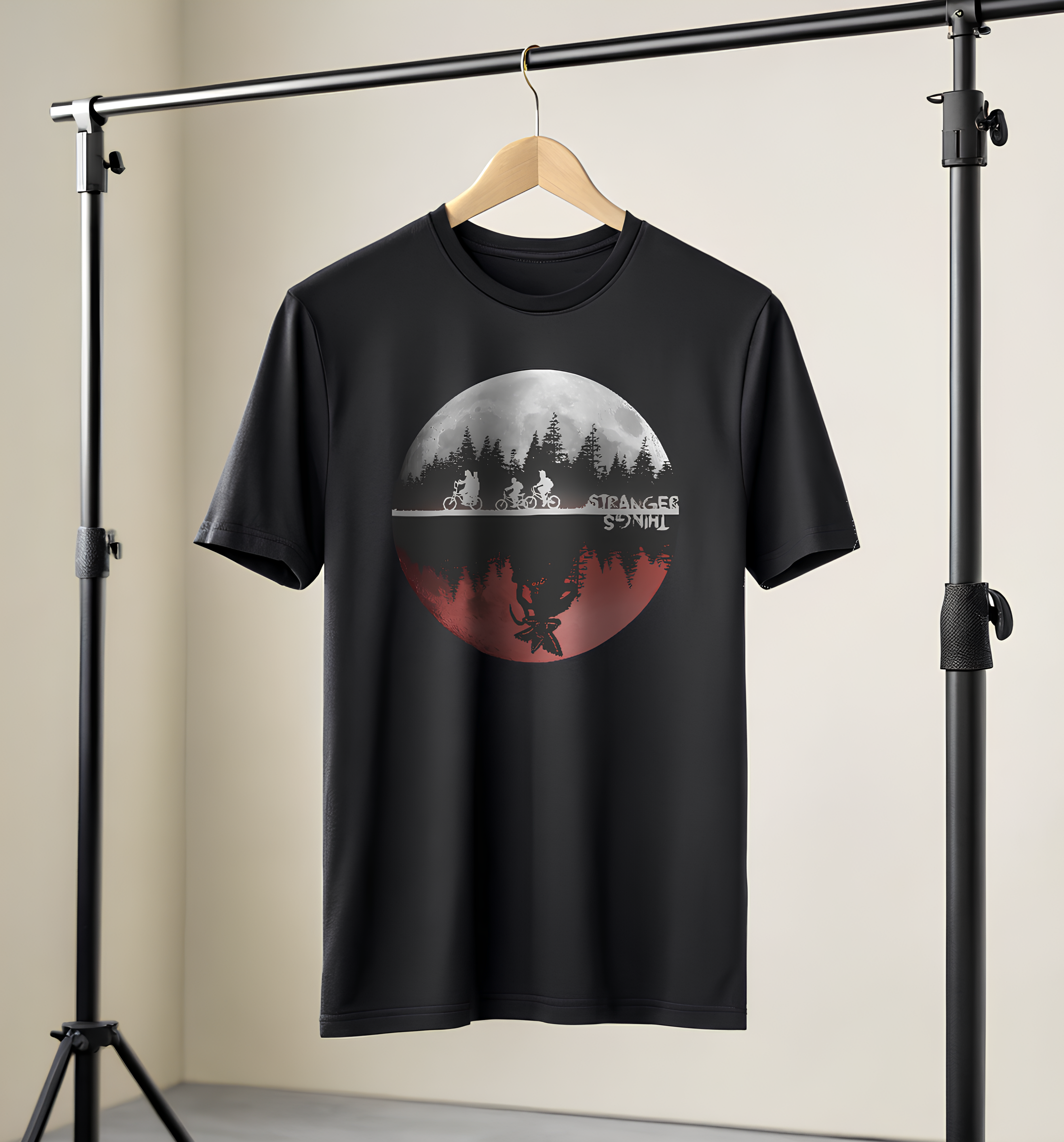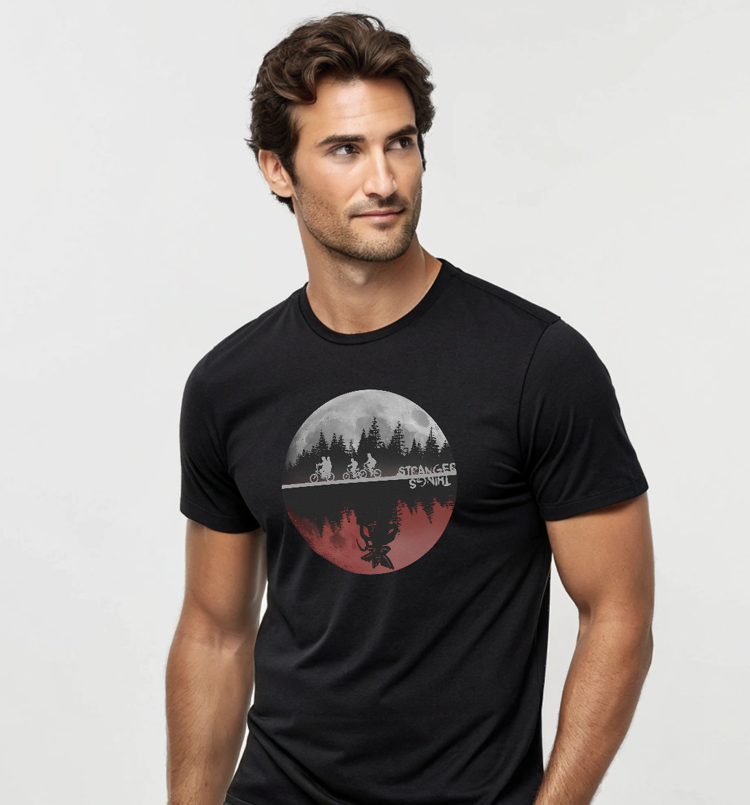 Step into the mystery of Hawkins with this Stranger Things–inspired graphic T-shirt, designed for fans who love subtle storytelling and bold aesthetics. Featuring a striking circular artwork, the design captures the eerie contrast between the real world and the Upside Down—all in one powerful visual.