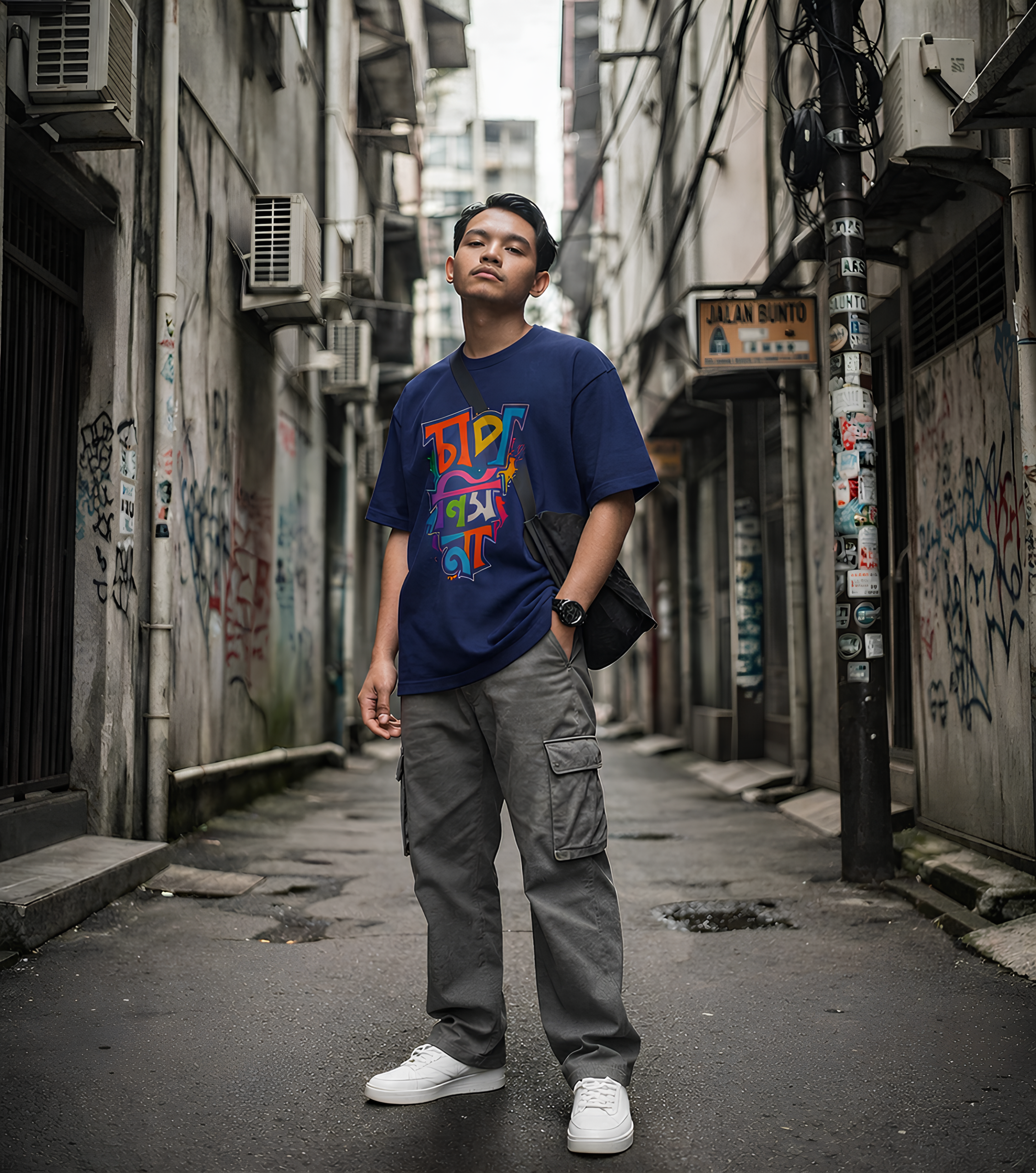 Make a bold cultural statement with this eye-catching Bengali typography T-shirt, designed for those who love art, language, and individuality. Featuring a dynamic mix of colorful, graffiti-inspired Bengali lettering, this design blends tradition with modern street-style aesthetics.