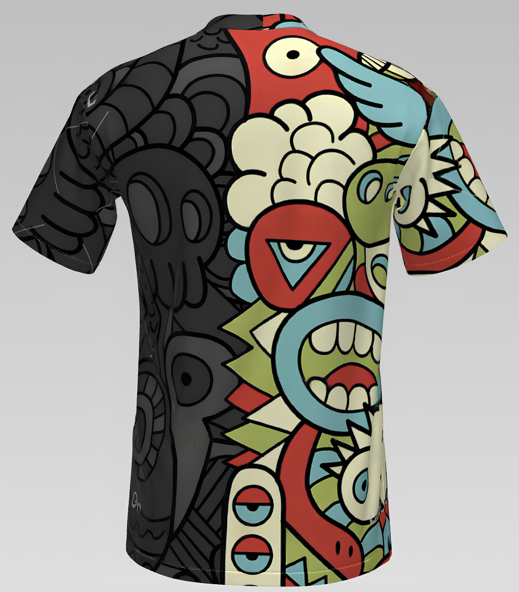 Make a bold statement with this eye-catching all-over graphic printed T-shirt that fuses abstract art, cartoon characters, and expressive street culture into one powerful piece. Designed for those who want their fashion to speak loudly, this tee is a true wearable artwork featuring vibrant monsters, playful faces, and graffiti-inspired elements – all blended into a high-energy collage.