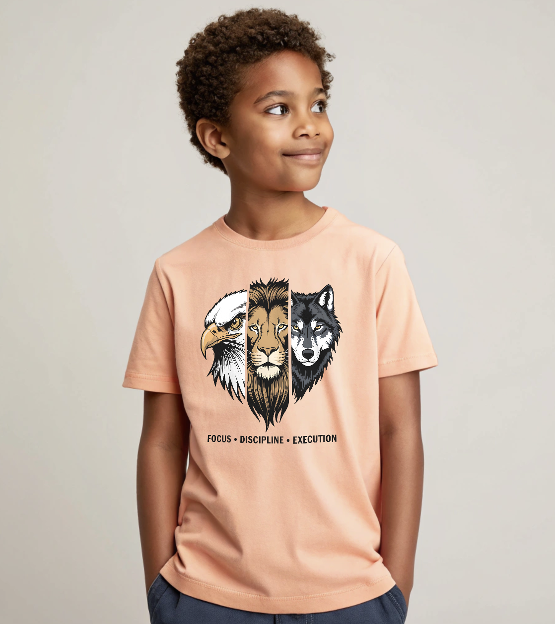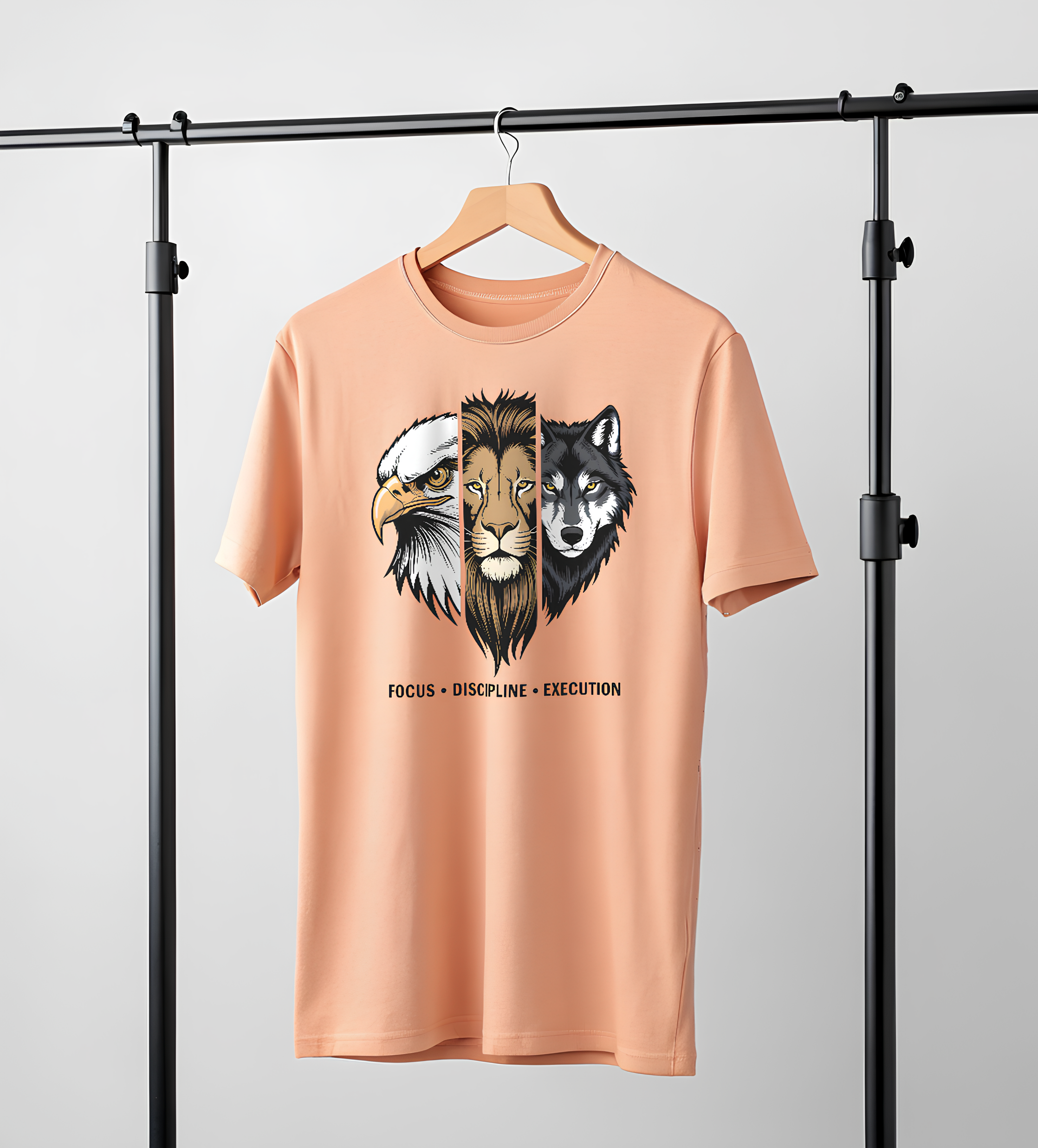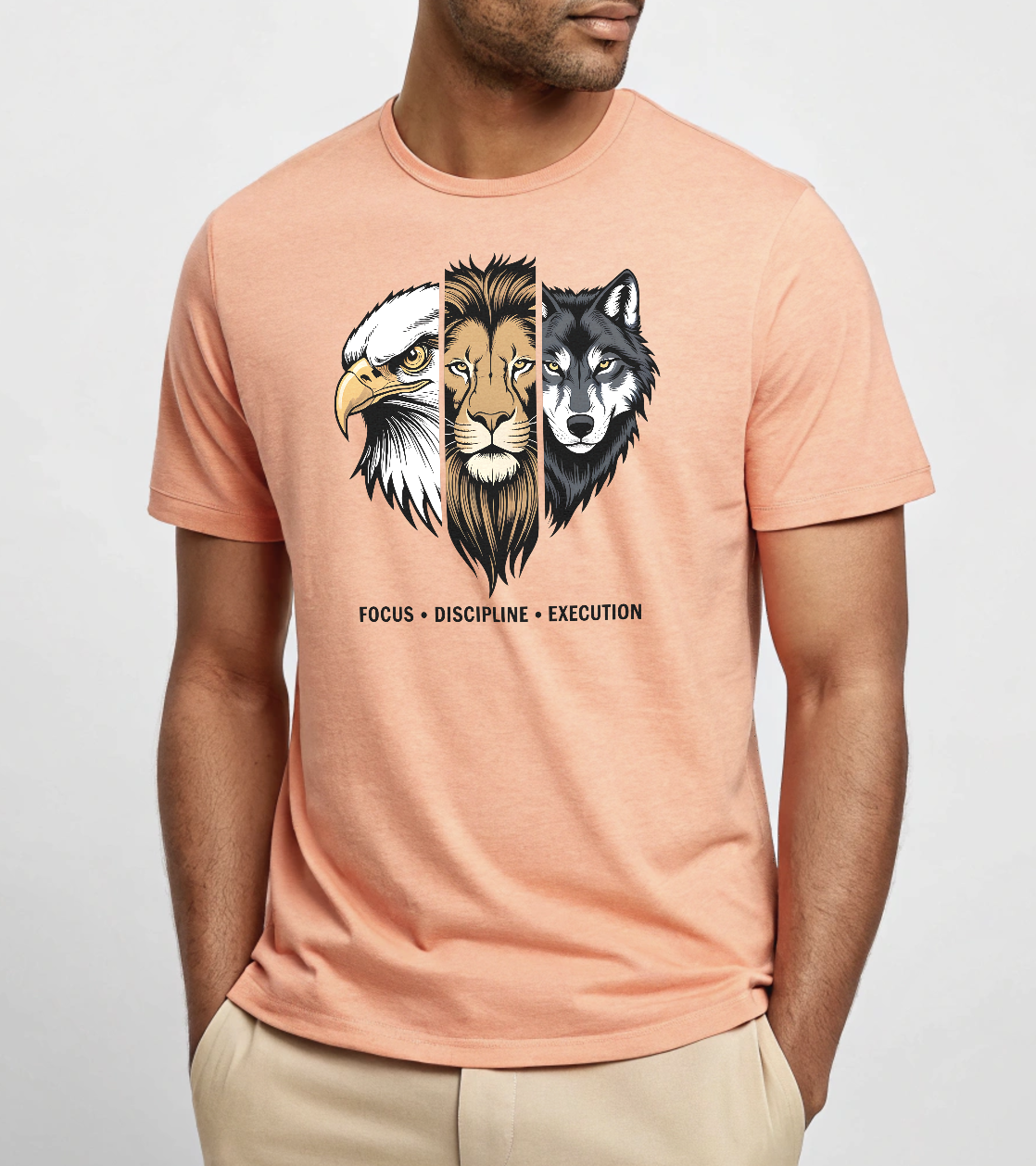 - Unleash your inner power with this bold “Focus • Discipline • Execution” graphic t-shirt—crafted for people who believe in consistency, mindset, and results. This design represents three unstoppable forces in one powerful visual: the Eagle (vision & sharp focus), the Lion (courage & discipline), and the Wolf (strategy & execution).