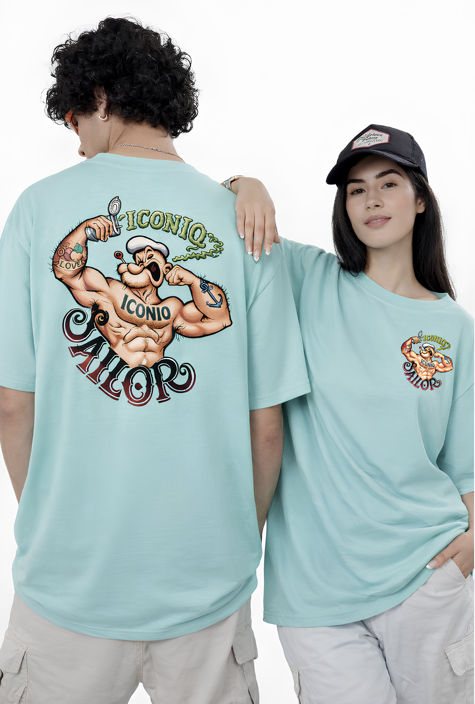 • Make a bold statement with the ICONIQ Sailor Graphic Oversized T-Shirt, a perfect blend of streetwear attitude and vintage sailor inspiration. Designed for those who love standout fashion, this tee features a powerful cartoon sailor graphic that symbolizes strength, confidence, and iconic style.
