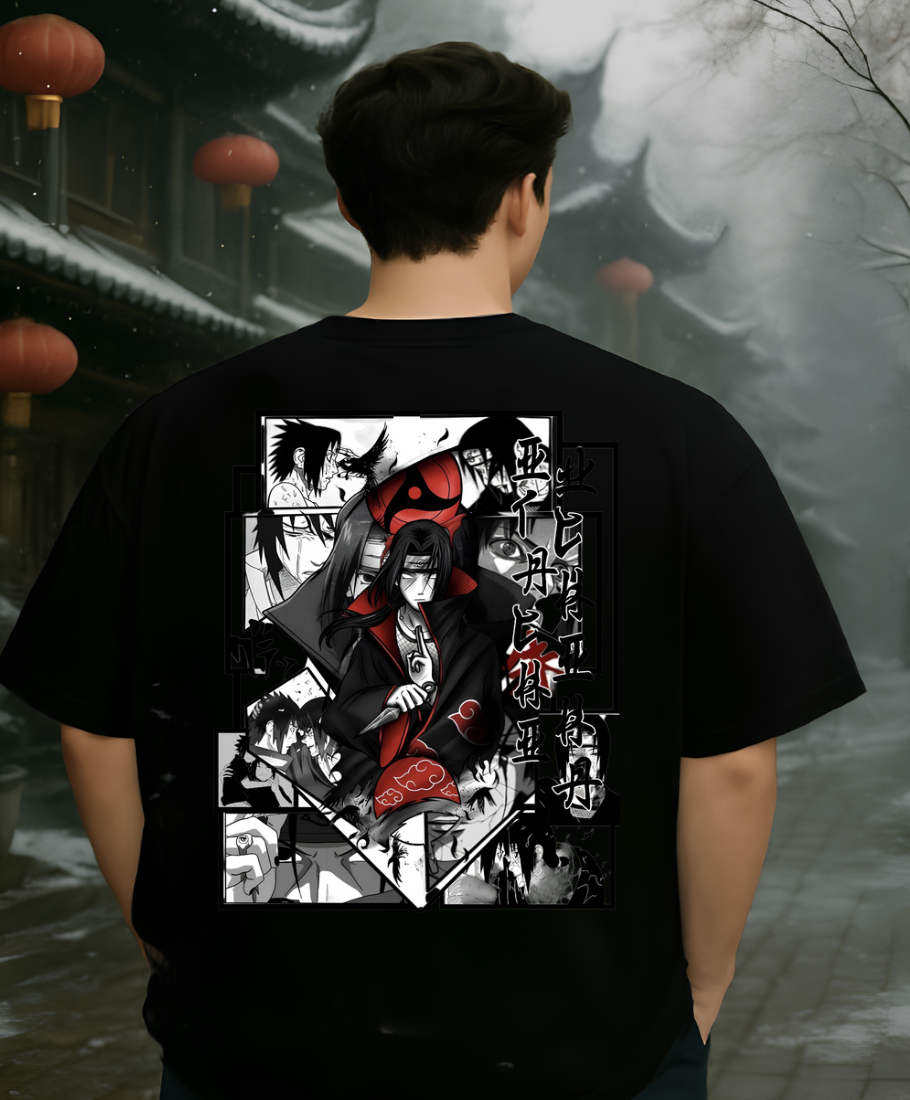 Design: Large back print featuring Itachi Uchiha & Akatsuki theme