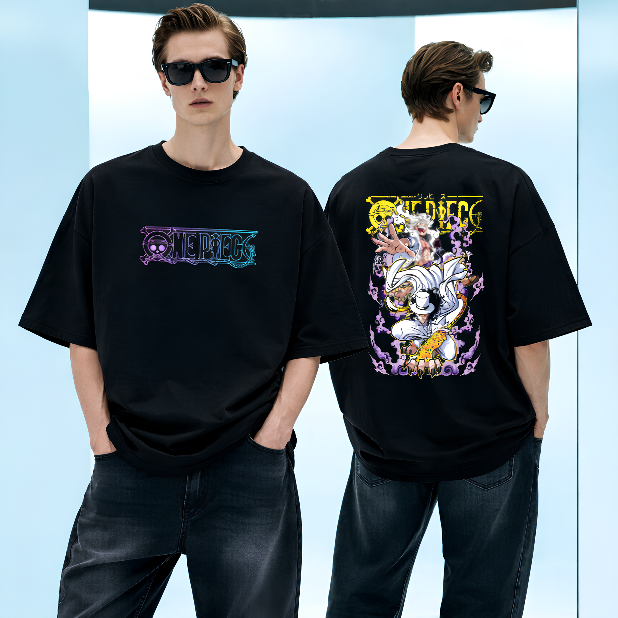 Front Print Version: Minimalist yet stylish with the iconic One Piece logo printed across the chest in a gradient finish, offering a sleek and versatile look.