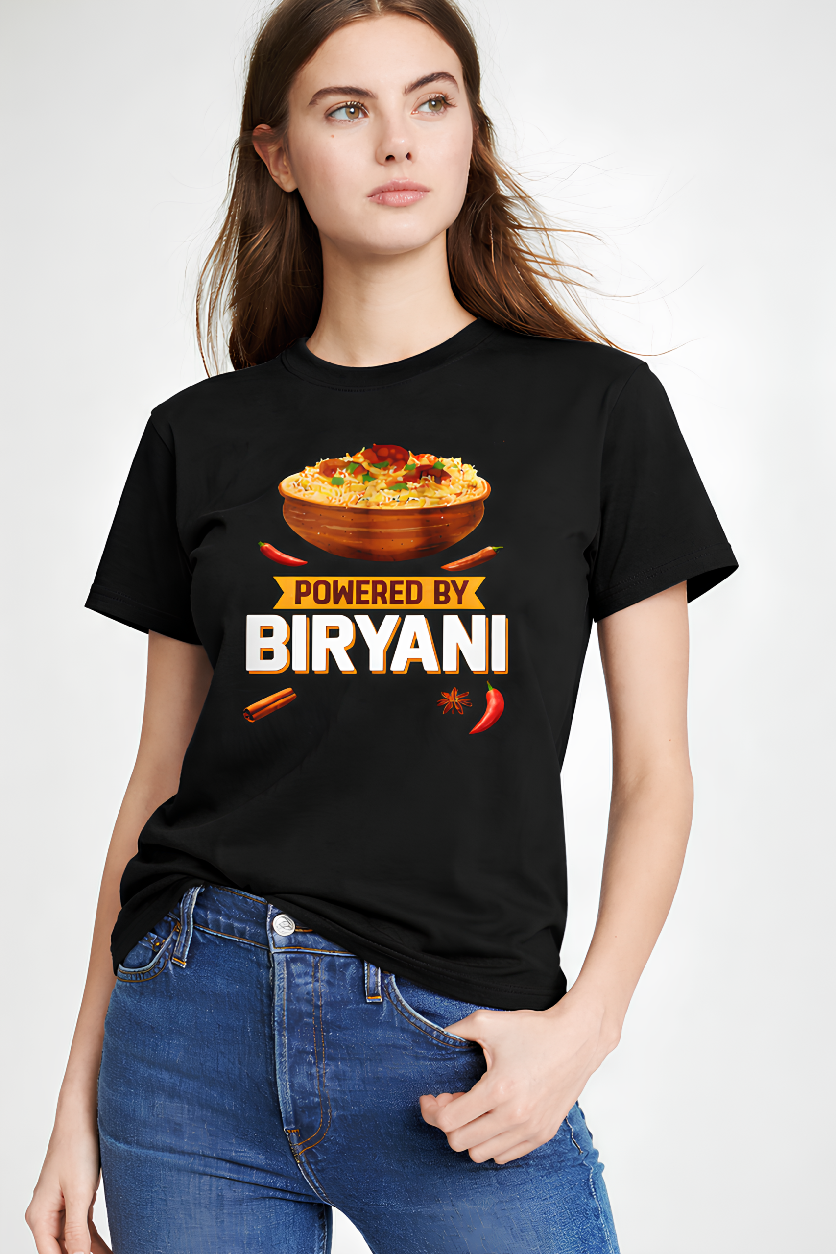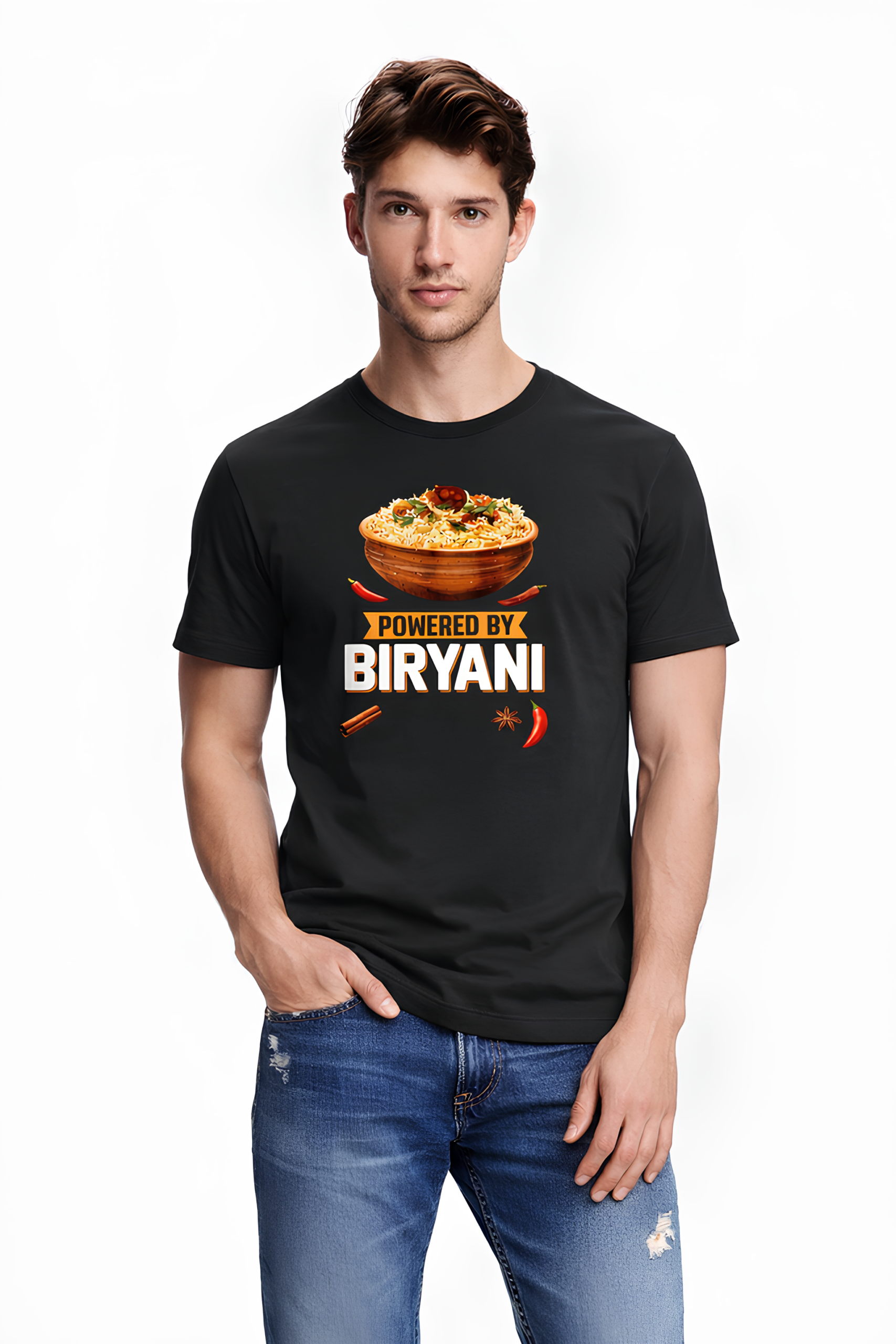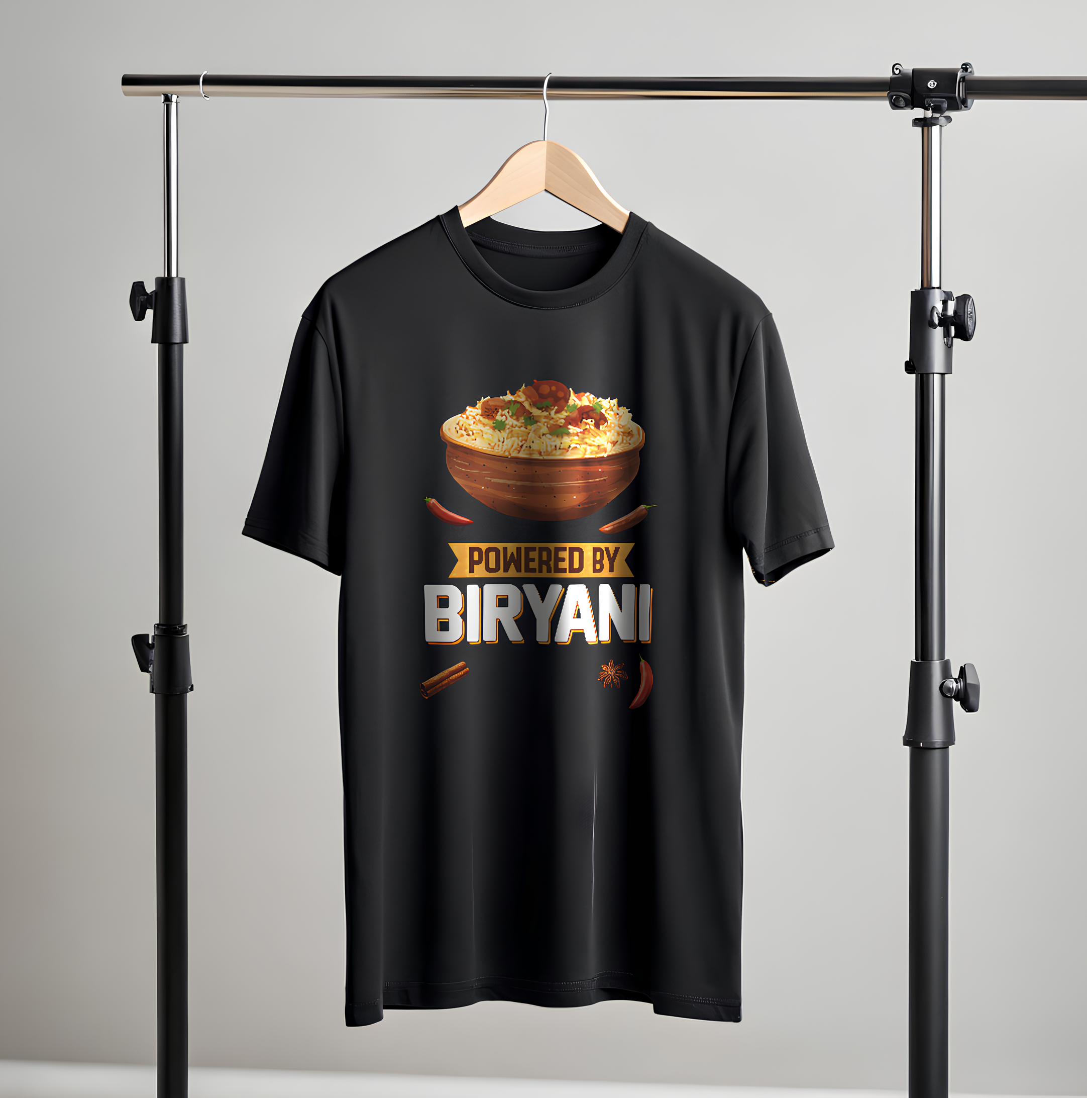 • For those who run on spices, flavor, and pure desi energy — this tee says it loud and proud. The “Powered By Biryani” T-shirt is made for true biryani lovers who believe life tastes better with extra masala.
