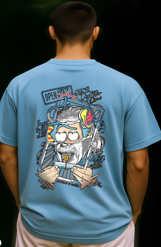 Step into bold expression with our Baby Blue Oversized Graphic Tee, a perfect fusion of comfort and creativity. Designed for those who love making a statement, this T-shirt features eye-catching double-sided prints that blend streetwear vibes with artistic flair.