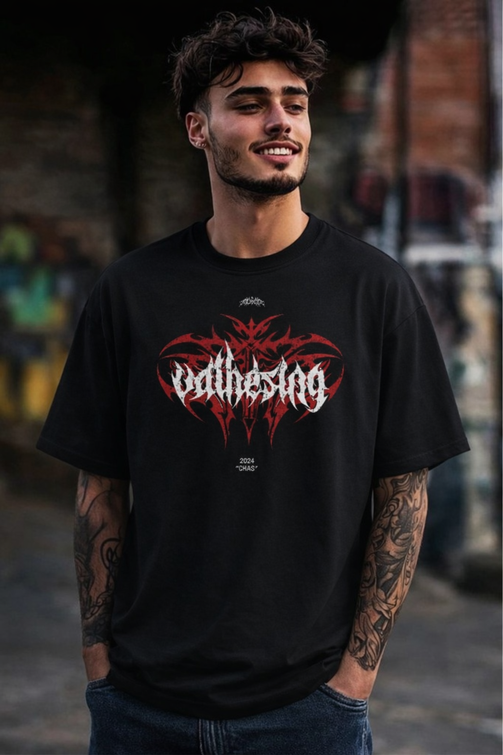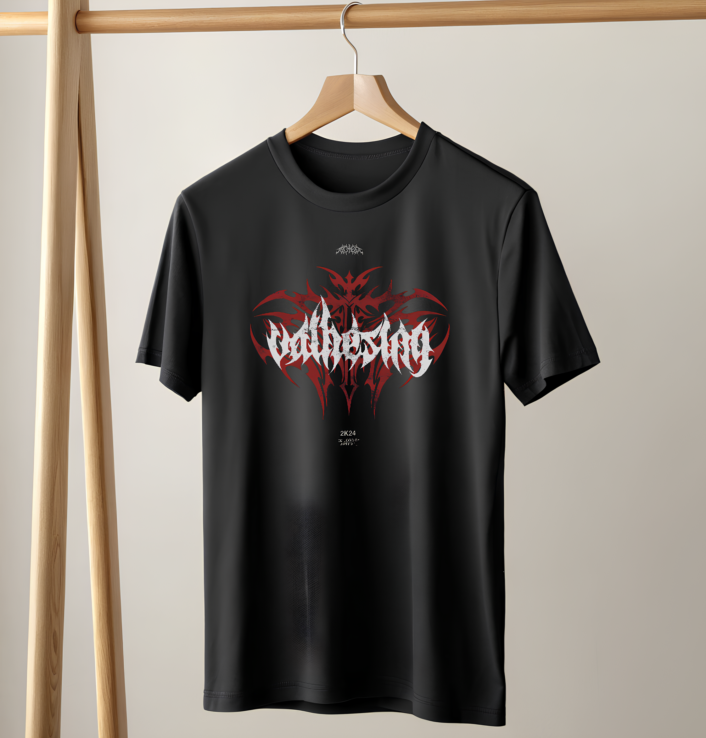 - Step into bold expression with this striking black graphic T-shirt designed for those who live outside the ordinary. Featuring a sharp crimson tribal emblem layered with aggressive gothic typography, this piece delivers raw street energy with a modern premium finish.