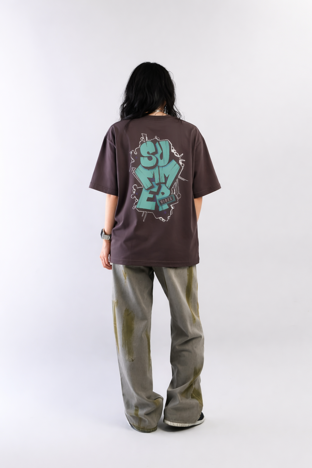 Bold graffiti-style back print with “SUMMER VIBES” theme