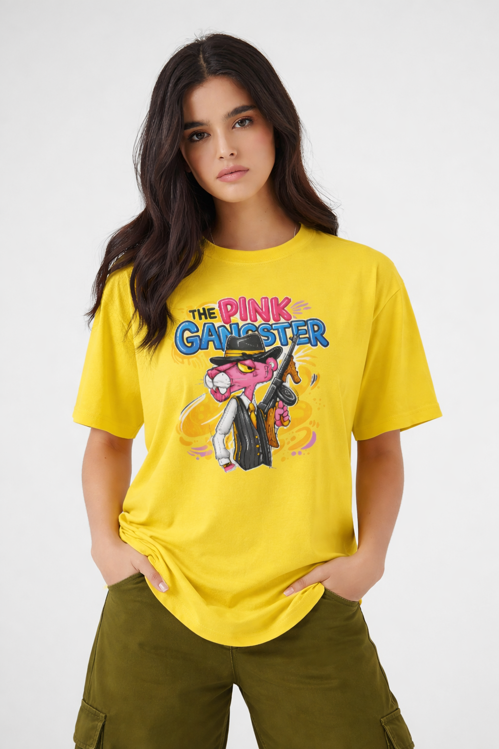 • Turn heads and own your attitude with the Pink Gangster Graphic T-Shirt — a vibrant streetwear essential designed for those who like their fashion loud, fearless, and full of personality.