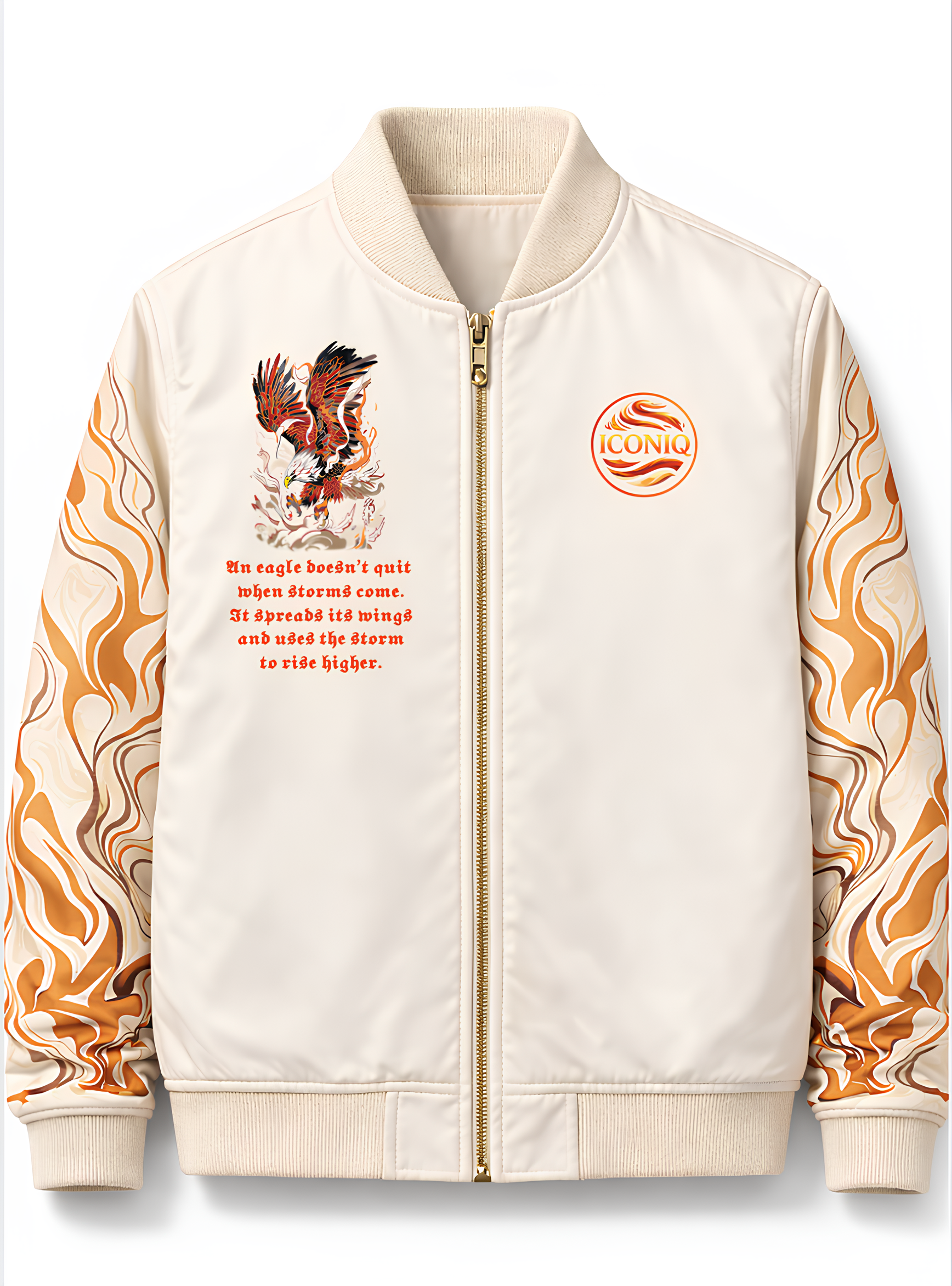 The ICONIQ Eagle Bomber Jacket is designed for people who face challenges head-on and never give up. Just like the eagle in the design, it represents the mindset of strength, confidence, and rising above every storm.