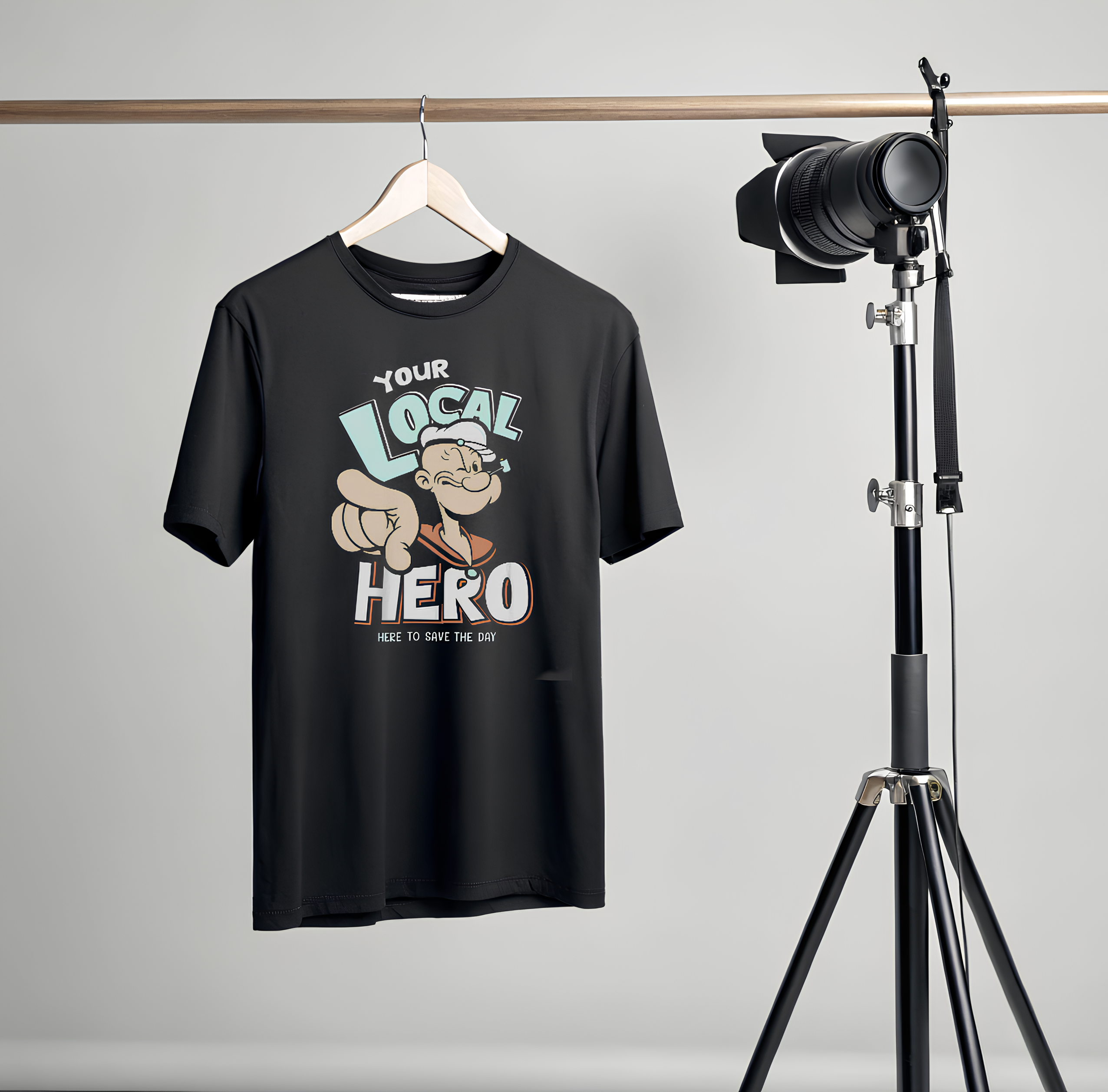 Step into effortless style with this bold and nostalgic “Your Local Hero” graphic T-shirt, inspired by timeless comic characters and vintage cartoon charm. Designed for those who like to stand out while keeping things fun and relaxed, this tee delivers personality, comfort, and statement-making appeal all in one.
